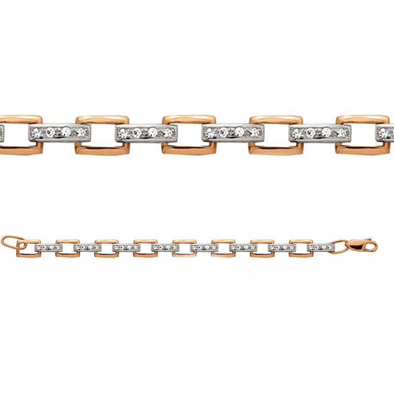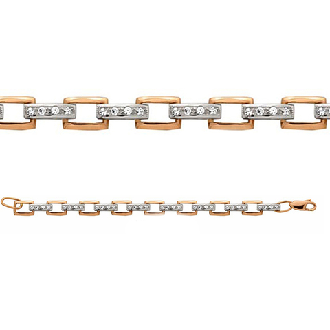 Обратите внимание, сколько очарования и утончённости в характере этого браслета – холодный цвет белого золота смягчается в глянцевом блеске красного, чаруя игрой света на своих гранях. Подвижный характер изделий задаёт кокетливый и игривый тон образу его владелицы. Изящный замочек-карабин замыкает это совершенство в единое целое и надежно фиксирует браслет на руке своей счастливой обладательницы. Загляните в раздел НАШИ РАБОТЫ и оцените наше мастерство. Выберите то, что принесёт Вам удовольствие! Металл изготовления – золото (583 или 750 проба) в красном, белом, лимонном цвете. Принимаем на переработку ваш металл: золото в пробах 500 (турецкое и польское), 750, 583, 885(стоматологическое), 900(монеты), 999,9(банковские слитки) Дополнительные услуги: Изменение цвета золота +30% к цене изготовления.Цена указана за работу и не включает стоимость камней (цвет камней –Ваш выбор). Камни круг 1,5 мм Расчет цены и веса - индивидуально. Дополнительно оплачивается карабин.