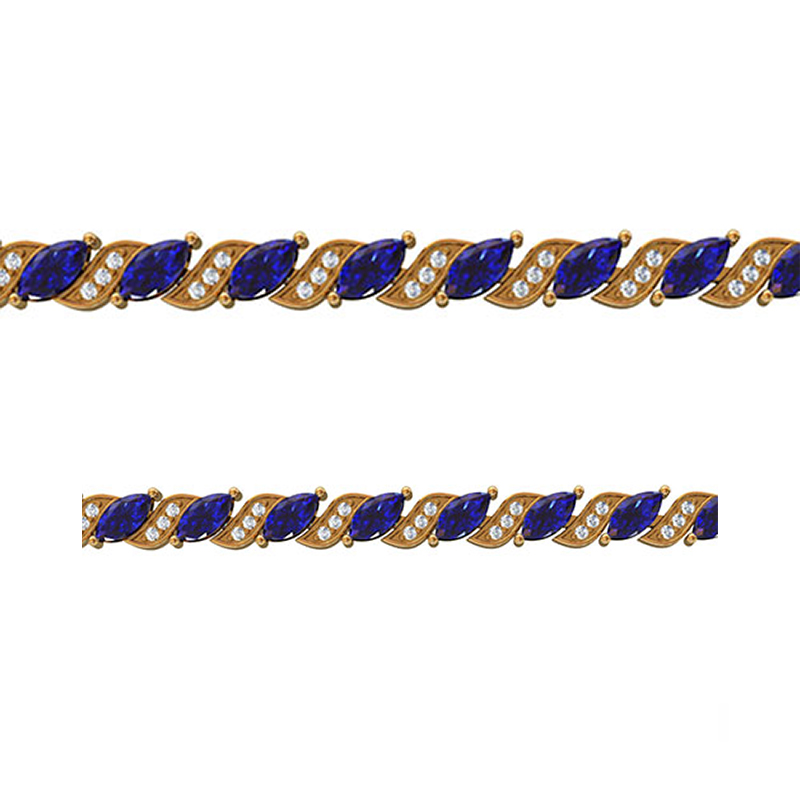 Царственное сияние, которое синтетический сапфир источает под лучами света, не оставит равнодушной ни одну женщину. Его яркий блеск в сочетании с мерцанием золота создает просто невероятную ювелирную симфонию! Изящный замочек-карабин замыкает это совершенство в единое целое и надежно фиксирует браслет на руке своей счастливой обладательницы. Загляните в раздел НАШИ РАБОТЫ и оцените наше мастерство. Выберите то, что принесёт Вам удовольствие! Металл изготовления – золото (583 или 750 проба) в красном, белом, лимонном цвете или серебро (925 проба). Принимаем на переработку ваш металл: золото в пробах 500 (турецкое и польское), 750, 583, 885(стоматологическое), 900(монеты), 999,9(банковские слитки) и серебро в пробах 875, 900, 916, 925,999,9. Дополнительные услуги: Изменение цвета золота +30% к цене изготовления. Чернение серебра. Цена указана за работу и не включает стоимость камней (цвет камней –Ваш выбор). Цена указана за работу и не включает стоимость камней (цвет камней –Ваш выбор). Камни маркиз 5х2,5мм. Расчет цены и веса - индивидуально.