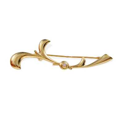 Мерцающие фианиты в золотой фантазии! Эта красивая брошь из золота эффектно дополнит Ваш образ. Длина 55 мм. Металл изготовления – золото (583 или 750 проба) в красном, белом, лимонном цвете или серебро (925 проба). Принимаем на переработку ваш металл: золото в пробах 500 (турецкое и польское), 750, 583, 885(стоматологическое), 900 (монеты), 999,9 (банковские слитки) и серебро в пробах 875, 900, 916, 925,999,9. Дополнительные услуги: Изменение цвета золота +30% к цене изготовления. Родирование белого золота. Чернение серебра. Цена указана за работу и не включает стоимость камней (цвет камней –Ваш выбор). Камни Ø 2,0 мм.