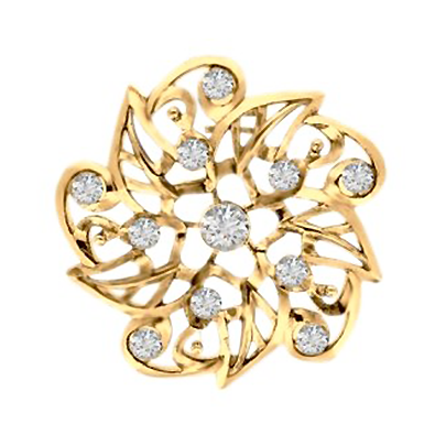 Силуэт украшения выполнен в виде цветка. Изделие декорировано прозрачными фианитами, что придаёт дополнительную глубину украшению. Брошь подойдёт для светских мероприятий и деловых встреч, неформальных вечеринок. Диаметр 30 мм. Металл изготовления – золото (583 или 750 проба) в красном, белом, лимонном цвете или серебро (925 проба). Принимаем на переработку ваш металл: золото в пробах 500 (турецкое и польское), 750, 583, 885(стоматологическое), 900 (монеты), 999,9 (банковские слитки) и серебро в пробах 875, 900, 916, 925,999,9. Дополнительные услуги: Изменение цвета золота +30% к цене изготовления. Родирование белого золота. Чернение серебра. Цена указана за работу и не включает стоимость камней (цвет камней –Ваш выбор). Камни Ø 1,5 мм.