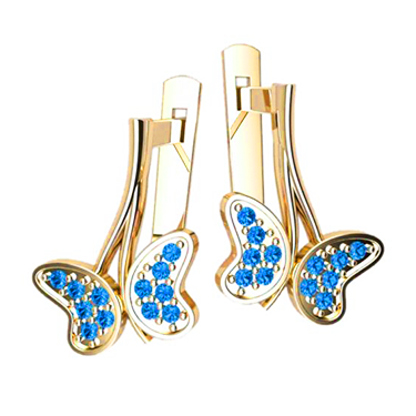 Золотые серьги в форме бабочек, украшенные камнями под цвет глаз ребенка. Эта модель легкая и не доставляет дискомфорта при носке, что немаловажно для тех, что ценить не только красоту, но и удобство. Надёжная застёжка - английская. Металл изготовления – золото (583 или 750 проба) в красном, белом, лимонном цвете или серебро (925 проба). Принимаем на переработку ваш металл: золото в пробах 500 (турецкое и польское), 750, 583, 885(стоматологическое), 900 (монеты), 999,9 (банковские слитки) и серебро в пробах 875, 900, 916, 925,999,9. Дополнительные услуги: Изменение цвета золота +30% к цене изготовления. Родирование белого золота. Чернение серебра. Цена указана за работу и не включает стоимость камней (цвет камней –Ваш выбор).Камни Ø 1,0 мм.