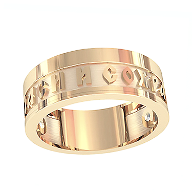 Короткая молитва, которая вмещает в себя так много: просьбу о защите, надежду на лучшее и тихое упование на Бога. Металл изготовления – золото (583 или 750 проба) в красном, белом, лимонном цвете или серебро (925 проба). Принимаем на переработку ваш металл: золото в пробах 500 (турецкое и польское), 750, 583, 885(стоматологическое), 900 (монеты), 999,9 (банковские слитки) и серебро в пробах 875, 900, 916, 925,999,9. Дополнительные услуги: Изменение цвета золота +30% к цене изготовления. Родирование белого золота. Чернение серебра. Ширина шинки 7,0 мм.Цена указана за работу и не включает стоимость камней (цвет камней –Ваш выбор). Камень круг 3,0 мм.