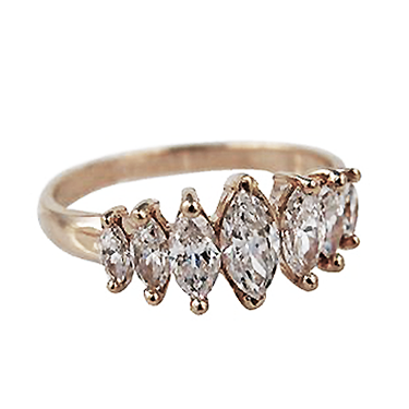 Кольцо с камнями разной формы огранки маркиз не оставят равнодушной ни одну модницу. Эти блестящие камни способны восхитить своим прелестным блеском и заменить настоящие бриллианты. Металл изготовления – золото (583 или 750 проба) в красном, белом, лимонном цвете или серебро (925 проба). Принимаем на переработку ваш металл: золото в пробах 500 (турецкое и польское), 750, 583, 885(стоматологическое), 900 (монеты), 999,9 (банковские слитки) и серебро в пробах 875, 900, 916, 925,999,9. Дополнительные услуги: Изменение цвета золота +30% к цене изготовления. Родирование белого золота. Чернение серебра. Цена указана за работу и не включает стоимость камней (цвет камней –Ваш выбор). Камни маркизы разных размеров.