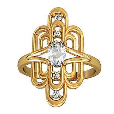 Это кольцо - отличный выбор для тех, кто любит элегантность и неповторимость. Оригинальная форма кольца удлинит красивые женские пальчики с великолепным маникюром. Металл изготовления – золото (583 или 750 проба) в красном, белом, лимонном цвете или серебро (925 проба). Принимаем на переработку ваш металл: золото в пробах 500 (турецкое и польское), 750, 583, 885(стоматологическое), 900 (монеты), 999,9 (банковские слитки) и серебро в пробах 875, 900, 916, 925,999,9. Дополнительные услуги: Изменение цвета золота +30% к цене изготовления. Родирование белого золота. Чернение серебра. Цена указана за работу и не включает стоимость камней (цвет камней –Ваш выбор). Камень овал 6х4 мм по центру