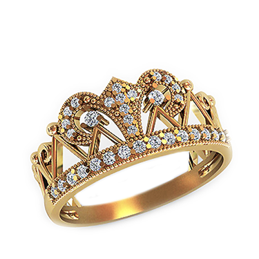 Кольца в виде короны – традиционно считались знаком принадлежности к королевской семье в Ирландии, но сегодня прочно вошли в ювелирную моду. Украшения для особых случаев должны выглядеть ярко, интересно и дорого. Металл изготовления – золото (583 или 750 проба) в красном, белом, лимонном цвете. Принимаем на переработку ваш металл: золото в пробах 500 (турецкое и польское), 750, 583, 885(стоматологическое), 900 (монеты), 999,9 (банковские слитки). Дополнительные услуги: Изменение цвета золота +30% к цене изготовления. Родирование белого золота. Цена указана за работу и не включает стоимость камней (цвет камней –Ваш выбор). Камни мелкие.