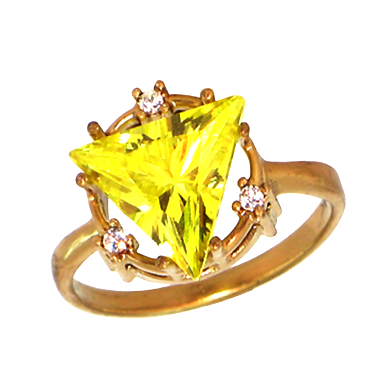 Для яркой и впечатлительной особы, которая обожает небанальные украшения. Это кольцо невероятно эффектно и изящно подчеркнет вашу индивидуальность и неповторимость. Металл изготовления – золото (583 или 750 проба) в красном, белом, лимонном цвете. Принимаем на переработку ваш металл: золото в пробах 500 (турецкое и польское), 750, 583, 885(стоматологическое), 900 (монеты), 999,9 (банковские слитки). Дополнительные услуги: Изменение цвета золота +30% к цене изготовления. Родирование белого золота. Цена указана за работу и не включает стоимость камней (цвет камней –Ваш выбор). Камень треугольник 9х9 мм по центру.