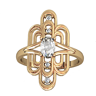 Это кольцо - отличный выбор для тех, кто любит элегантность и неповторимость. Оригинальная форма кольца удлинит красивые женские пальчики с великолепным маникюром. Металл изготовления – золото (583 или 750 проба) в красном, белом, лимонном цвете или серебро (925 проба). Принимаем на переработку ваш металл: золото в пробах 500 (турецкое и польское), 750, 583, 885(стоматологическое), 900 (монеты), 999,9 (банковские слитки) и серебро в пробах 875, 900, 916, 925,999,9. Дополнительные услуги: Изменение цвета золота +30% к цене изготовления. Родирование белого золота. Чернение серебра. Цена указана за работу и не включает стоимость камней (цвет камней –Ваш выбор). Камень овал 6х4 мм по центру