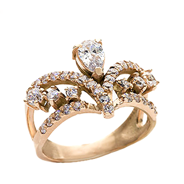 Кольцо в виде короны – традиционно считались знаком принадлежности к королевской семье, но сегодня прочно вошли в ювелирную моду. Металл изготовления – золото (583 или 750 проба) в красном, белом, лимонном цвете. Принимаем на переработку ваш металл: золото в пробах 500 (турецкое и польское), 750, 583, 885(стоматологическое), 900 (монеты), 999,9 (банковские слитки). Дополнительные услуги: Изменение цвета золота +30% к цене изготовления. Родирование белого золота. Цена указана за работу и не включает стоимость камней (цвет камней –Ваш выбор). Камень груша 6х4 мм по центру.