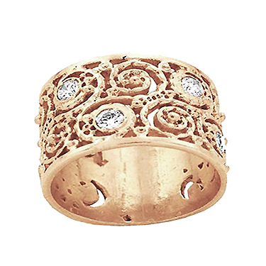 Кольцо для настоящих модников, любителей привлекать и удивлять окружающих. Будьте яркой звездой на любом мероприятии и акцентируйте внимание на своей персоне с помощью этого уникального украшения. Металл изготовления – золото (583 или 750 проба) в красном, белом, лимонном цвете или серебро (925 проба). Принимаем на переработку ваш металл: золото в пробах 500 (турецкое и польское), 750, 583, 885(стоматологическое), 900 (монеты), 999,9 (банковские слитки) и серебро в пробах 875, 900, 916, 925,999,9. Дополнительные услуги: Изменение цвета золота +30% к цене изготовления. Родирование белого золота. Чернение серебра. Цена указана за работу и не включает стоимость камней (цвет камней –Ваш выбор). Камни Ø 3,0 мм.