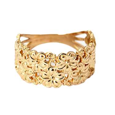 Ювелирное украшение, вдохновлённое природой. Замечательное воздушное кольцо из золота воссоздаёт вид цветков, обвитых вокруг ваших пальцев. Металл изготовления – золото (583 или 750 проба) в красном, белом, лимонном цвете или серебро (925 проба). Принимаем на переработку ваш металл: золото в пробах 500 (турецкое и польское), 750, 583, 885(стоматологическое), 900 (монеты), 999,9 (банковские слитки) и серебро в пробах 875, 900, 916, 925,999,9. Дополнительные услуги: Изменение цвета золота +30% к цене изготовления. Родирование белого золота. Чернение серебра.