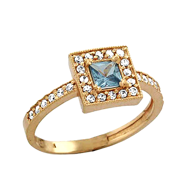 Квадратные голубые вставки под топаз в золотом блеске! Это изящное кольцо из золота будет прекрасно смотреться на Вашей руке и в качестве самостоятельного украшения, и в комплекте с серьгами Металл изготовления – золото (583 или 750 проба) в красном, белом, лимонном цвете или серебро (925 проба). Принимаем на переработку ваш металл: золото в пробах 500 (турецкое и польское), 750, 583, 885(стоматологическое), 900 (монеты), 999,9 (банковские слитки) и серебро в пробах 875, 900, 916, 925,999,9. Дополнительные услуги: Изменение цвета золота +30% к цене изготовления. Родирование белого золота. Чернение серебра. Цена указана за работу и не включает стоимость камней (цвет камней –Ваш выбор). Камни: квадрат 4х4 мм*1шт по центру; круглая огранка ø1,25мм*28шт.