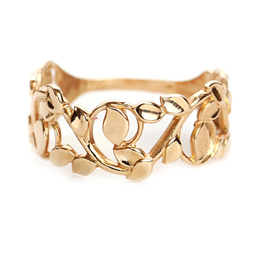 Ювелирное украшение, вдохновлённое природой. Замечательное воздушное кольцо из золота воссоздаёт вид листьев, обвитых вокруг ваших пальцев. Возможно изготовление в комплекте с серьгами. Металл изготовления – золото (583 или 750 проба) в красном, белом, лимонном цвете или серебро (925 проба). Принимаем на переработку ваш металл: золото в пробах 500 (турецкое и польское), 750, 583, 885(стоматологическое), 900 (монеты), 999,9 (банковские слитки) и серебро в пробах 875, 900, 916, 925,999,9. Дополнительные услуги: Изменение цвета золота +30% к цене изготовления. Родирование белого золота. Чернение серебра.