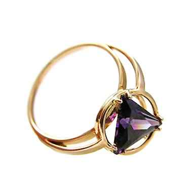 Стильное кольцо. Фиолетовый камень триллиант(в виде треугольника)за счет лапок приобретает королевский вид, подойдет для особых случаев. Оно изящно смотрится на пальце, подчеркивая женственность своей обладательницы. Добавьте в комплект подвес. Металл изготовления – золото (583 или 750 проба) в красном, белом, лимонном цвете или серебро (925 проба). Принимаем на переработку ваш металл: золото в пробах 500 (турецкое и польское), 750, 583, 885(стоматологическое), 900 (монеты), 999,9 (банковские слитки) и серебро в пробах 875, 900, 916, 925,999,9. Дополнительные услуги: Изменение цвета золота +30% к цене изготовления. Родирование белого золота. Чернение серебра. Цена указана за работу и не включает стоимость камней (цвет камней –Ваш выбор). Камень огранки треугольник 9х9 мм*1шт.