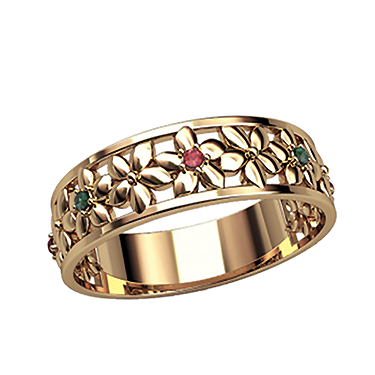 Ювелирное украшение, вдохновлённое природой. Замечательное воздушное кольцо из золота воссоздаёт вид цветков, обвитых вокруг ваших пальцев. Возможно изготовление в комплекте с серьгами. Металл изготовления – золото (583 или 750 проба) в красном, белом, лимонном цвете. Принимаем на переработку ваш металл: золото в пробах 500 (турецкое и польское), 750, 583, 885(стоматологическое), 900 (монеты), 999,9 (банковские слитки). Дополнительные услуги: Изменение цвета золота +30% к цене изготовления. Родирование белого золота. Цена указана за работу и не включает стоимость камней (цвет камней –Ваш выбор). Камни: круглая огранка, мелкие