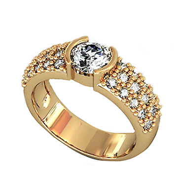Идеальное украшение, которое подчеркнет Вашу красоту. В центре композиции расположен крупный белый камень. Его красоту подчеркивает блеск искристых фианитов по ободку. Это кольцо из категории «дорого-богато» в хорошем смысле. Широкая золотая шинка полностью покрыта фианитами — никакого свободного металла, только камни, камни, камни. Добавьте к кольцу серьги. Металл изготовления – золото (583 или 750 проба) в красном, белом, лимонном цвете или серебро (925 проба). Принимаем на переработку ваш металл: золото в пробах 500 (турецкое и польское), 750, 583, 885(стоматологическое), 900 (монеты), 999,9 (банковские слитки) и серебро в пробах 875, 900, 916, 925,999,9. Дополнительные услуги: Изменение цвета золота +30% к цене изготовления. Родирование белого золота. Чернение серебра. Цена указана за работу и не включает стоимость камней (цвет камней –Ваш выбор). Камни: круглая огранка ø6,0мм по центру.
