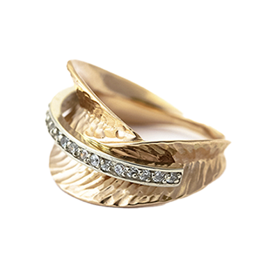 Данное украшение особо любимо модницами за смелость и причудливые формы. Носите это кольцо в дни, когда вам нужна внутренняя опора. Или когда вы хотите, чтобы окружающие заметили вашу руку. Или просто потому, что вам нравится смотреть на то, как камни вспыхивают при повороте кисти. Металл изготовления – золото (583 или 750 проба) в красном, белом, лимонном цвете или серебро (925 проба). Принимаем на переработку ваш металл: золото в пробах 500 (турецкое и польское), 750, 583, 885(стоматологическое), 900 (монеты), 999,9 (банковские слитки) и серебро в пробах 875, 900, 916, 925,999,9. Дополнительные услуги: Изменение цвета золота +30% к цене изготовления. Родирование белого золота. Чернение серебра. Цена указана за работу и не включает стоимость камней (цвет камней –Ваш выбор). Камни: круглая огранка мелкие.