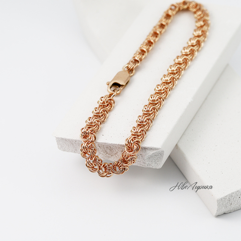 Плетение "Роза" - трудоемкое, но эффектное. Звенья состоят из нескольких разнонаправленных колец в виде цветов (распустившихся бутонов), которые прочно соединяются между собой. Эта техника витья ювелирами используется недавно, но уже доказала свою надежность. Металл изготовления – золото 583 проба в красном цвете. Принимаем на переработку ваш металл: золото в пробах 500 (турецкое и польское), 750, 583, 885(стоматологическое), 900(монеты), 999,9(банковские слитки).