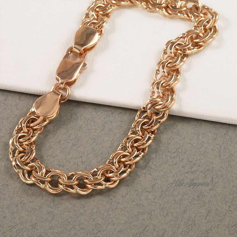 Плетение "Бисмарк" считается одним из самых красивых и прочных, проверенных временем. Это сложная, но эффектная вязь, которая обеспечивает крепкое сцепление звеньев. Основные качества: прочность, надежность, привлекательность. Металл изготовления – золото 583 проба в красном цвете. Принимаем на переработку ваш металл: золото в пробах 500 (турецкое и польское), 750, 583, 885(стоматологическое), 900(монеты), 999,9(банковские слитки).