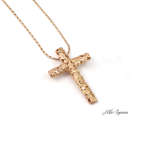 Крест. Размер 29х19 мм (ушко потайное). Металл изготовления – золото 583 проба в красном цвете. Принимаем на переработку ваш металл: золото в пробах 500 (турецкое и польское), 750, 583, 885(стоматологическое), 900 (монеты), 999,9 (банковские слитки).