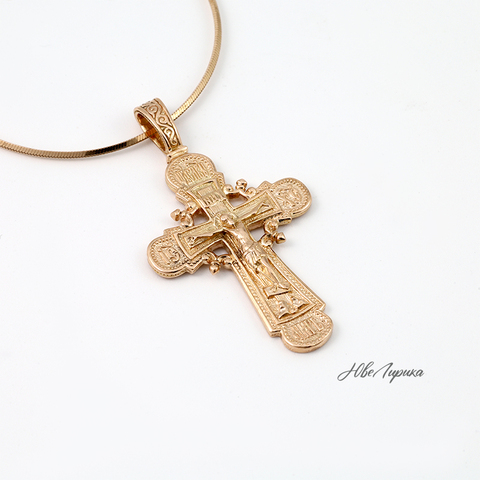 Крест. Размер 35х25 мм (без ушка под цепь). Металл изготовления – золото 583 проба в красном цвете. Принимаем на переработку ваш металл: золото в пробах 500 (турецкое и польское), 750, 583, 885(стоматологическое), 900 (монеты), 999,9 (банковские слитки).