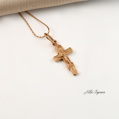 Крест. Размер 20х12 мм (без ушка под цепь). Металл изготовления – золото 583 проба в красном цвете. Принимаем на переработку ваш металл: золото в пробах 500 (турецкое и польское), 750, 583, 885(стоматологическое), 900 (монеты), 999,9 (банковские слитки).