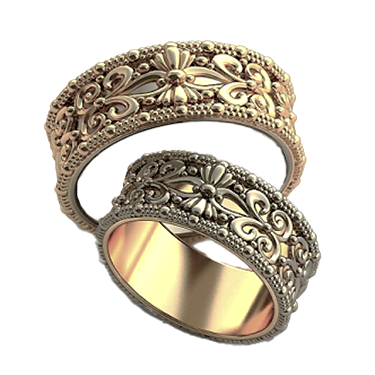 Ажурные обручальные кольца — это ювелирное кружево, застывшее в металле. Благодаря особым образом нанесённому узору, такое кольцо буквально сияет в лучах света. Такая работа ювелира очень ценна, поскольку выполнить резьбу довольно непросто: необходимо много времени, опыта и креативных идей. Такие кольца ручной работы смотрятся очень стильно, современно и необычно. Металл изготовления – золото (583 или 750 проба) в красном, белом, лимонном цвете или серебро (925 проба). Принимаем на переработку ваш металл: золото в пробах 500 (турецкое и польское), 750, 583, 885(стоматологическое), 900 (монеты), 999,9 (банковские слитки) и серебро в пробах 875, 900, 916, 925,999,9. Дополнительные услуги: Изменение цвета золота +30% к цене изготовления. Родирование белого золота. Чернение серебра. Цена указана за работу (за изготовление одного кольца).