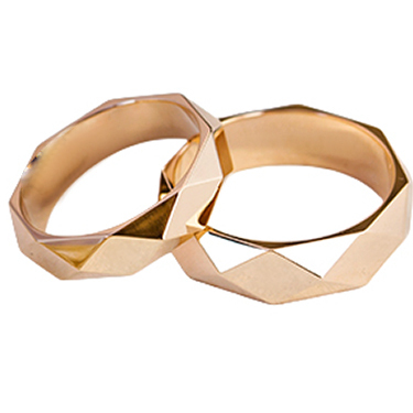 Золотые обручальные кольца, стилизованы под горные вершины. Кольца с характером, для тех, кто не боится трудностей и всегда идет вперед. Необычные парные обручальные кольца стоит выбирать тем молодоженам, которые не любят простоту и обыденность, считают классику и традиции скучными и устаревшими, обладают креативностью и подвижным умом. Блеск сменяется благородной сдержанностью, свет — тенью, яркость — глубиной. Ни один элемент не доминирует — они существуют в идеальном равновесии. Гранёные кольца с полированной глянцевой поверхностью изготавливаются индивидуально под нужные размеры и параметры. Металл изготовления – золото (583 или 750 проба) в красном, белом, лимонном цвете или серебро (925 проба). Принимаем на переработку ваш металл: золото в пробах 500 (турецкое и польское), 750, 583, 885(стоматологическое), 900 (монеты), 999,9 (банковские слитки) и серебро в пробах 875, 900, 916, 925,999,9. Дополнительные услуги: Изменение цвета золота +30% к цене изготовления. Родирование белого золота. Чернение серебра. Цена указана за работу (за изготовление одного кольца).
