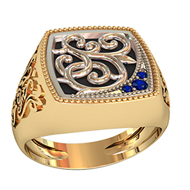 Лаконичная печатка, инкрустирована небольшими камнями и оформлена декором в виде резьбы, станет замечательным акцентом к любому образу. Металл изготовления – золото (583 или 750 проба) в красном, белом, лимонном цвете или серебро (925 проба). Принимаем на переработку ваш металл: золото в пробах 500 (турецкое и польское), 750, 583, 885(стоматологическое), 900 (монеты), 999,9 (банковские слитки) и серебро в пробах 875, 900, 916, 925,999,9. Дополнительные услуги: Изменение цвета золота +30% к цене изготовления. Родирование белого золота. Чернение серебра. Цена указана за работу и не включает стоимость камней (цвет камней –Ваш выбор). Камни Ø 1,5; 2,25 мм. Размер верхней площадки 16х16 мм. Накладка из белого золота.
