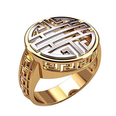 Мужское кольцо необычного дизайна с греческим узором. Выглядит модно и актуально. Верхняя часть - символ счастья и процветания, как один из наиболее действенных инструментов фен-шуй. Носите его каждый день, чтобы производить впечатление стильной личности с безупречным вкусом! Металл изготовления – золото (583 или 750 проба) в красном, белом, лимонном цвете или серебро (925 проба). Принимаем на переработку ваш металл: золото в пробах 500 (турецкое и польское), 750, 583, 885(стоматологическое), 900 (монеты), 999,9 (банковские слитки) и серебро в пробах 875, 900, 916, 925,999,9. Дополнительные услуги: Изменение цвета золота +30% к цене изготовления. Родирование белого золота. Чернение серебра. Цена указана за работу. Размер верхней площадки 18х15 мм.