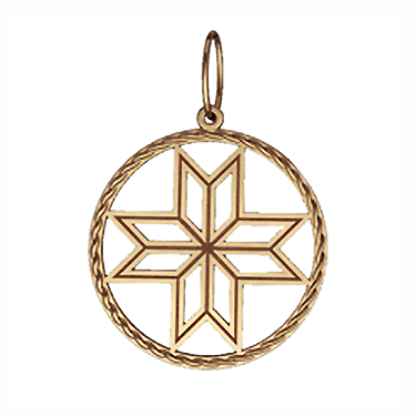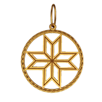 Оберег олицетворяет собой поиск истинного пути, своего предназначения и цели. Символ дает силы своему обладателю справиться с трудностями и не сбиться с намеченного пути. Металл изготовления – золото (583 или 750 проба) в красном, белом, лимонном цвете или серебро (925 проба). Принимаем на переработку ваш металл: золото в пробах 500 (турецкое и польское), 750, 583, 885(стоматологическое), 900 (монеты), 999,9 (банковские слитки) и серебро в пробах 875, 900, 916, 925,999,9. Дополнительные услуги: Изменение цвета золота +30% к цене изготовления. Родирование белого золота. Чернение серебра. Цена указана за работу. Диаметр кулона 25 мм.
