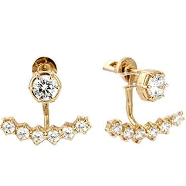 Серьги – джекеты (съёмные), состоят из двух частей. Популярность таких серёг обусловлена универсальностью изделия. Их надевают в офис, на клубную вечеринку и на светское мероприятие. Размер серёг 16х20 мм. Для крепления используются застежка-бабочка (зажим) или винт. Металл изготовления – золото (583 или 750 проба) в красном, белом, лимонном цвете или серебро (925 проба). Принимаем на переработку ваш металл: золото в пробах 500 (турецкое и польское), 750, 583, 885(стоматологическое), 900 (монеты), 999,9 (банковские слитки) и серебро в пробах 875, 900, 916, 925,999,9. Дополнительные услуги: Изменение цвета золота +30% к цене изготовления. Родирование белого золота. Чернение серебра. Цена указана за работу и не включает стоимость камней (цвет камней –Ваш выбор).Камни Ø 5,0 мм по центру.