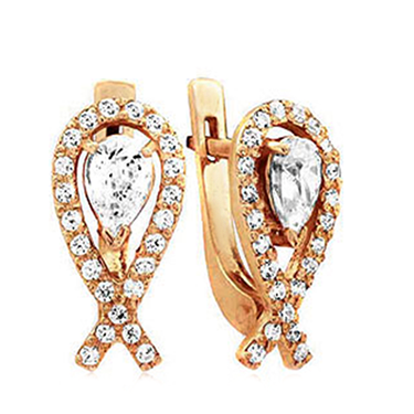 Такие серьги замечательно смотрятся и с распущенными волосами, и классической прической, именуемой как «конский хвост». Ряд вставок из фианитов, расположенный по периметру, обозначают значимость основного композиционного элемента данных серег. Нарядные золотые серьги с английским замком. Размер серёг 22х9 мм. Металл изготовления – золото (583 или 750 проба) в красном, белом, лимонном цвете или серебро (925 проба). Принимаем на переработку ваш металл: золото в пробах 500 (турецкое и польское), 750, 583, 885(стоматологическое), 900 (монеты), 999,9 (банковские слитки) и серебро в пробах 875, 900, 916, 925,999,9. Дополнительные услуги: Изменение цвета золота +30% к цене изготовления. Родирование белого золота. Чернение серебра. Цена указана за работу и не включает стоимость камней (цвет камней –Ваш выбор). Камни груши 6х4 мм по центру.