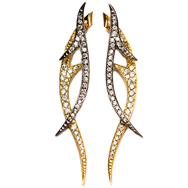 Вечернее сияние. Конечно, на работу в подобных украшениях не отправишься, но для вечера этой самый лучший вариант! Серьги с английской застёжкой считаются одними из самых удобных и надёжных. Размер серёг 50х15 мм. Металл изготовления – золото (583 или 750 проба) в красном, белом, лимонном цвете или серебро (925 проба). Принимаем на переработку ваш металл: золото в пробах 500 (турецкое и польское), 750, 583, 885(стоматологическое), 900 (монеты), 999,9 (банковские слитки) и серебро в пробах 875, 900, 916, 925,999,9. Дополнительные услуги: Изменение цвета золота +30% к цене изготовления. Родирование белого золота. Чернение серебра. Цена указана за работу и не включает стоимость камней (цвет камней –Ваш выбор).Камни мелкие.