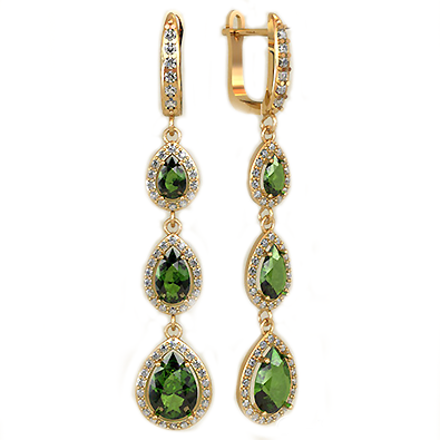 Эти серьги самодостаточны. Если девушка выбрала в качестве вечернего аксессуара такие серьги-подвески, то бусы или колье будут лишними. Нарядные золотые серьги с английским замком. Размер серёг 40х12 мм. Металл изготовления – золото (583 или 750 проба) в красном, белом, лимонном цвете или серебро (925 проба). Принимаем на переработку ваш металл: золото в пробах 500 (турецкое и польское), 750, 583, 885(стоматологическое), 900 (монеты), 999,9 (банковские слитки) и серебро в пробах 875, 900, 916, 925,999,9. Дополнительные услуги: Изменение цвета золота +30% к цене изготовления. Родирование белого золота. Чернение серебра. Цена указана за работу и не включает стоимость камней (цвет камней –Ваш выбор). Камни груши 10х7, 8х5 мм.
