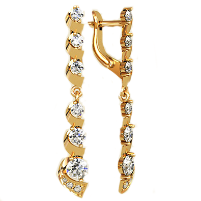 Серьги-подвески — манящая игра света. Это хорошее дополнение к вечернему наряду, которое придаст образу женственности и даже некой сексуальности. Нарядные золотые серьги с английским замком. Размер серёг 44х7 мм. Металл изготовления – золото (583 или 750 проба) в красном, белом, лимонном цвете или серебро (925 проба). Принимаем на переработку ваш металл: золото в пробах 500 (турецкое и польское), 750, 583, 885(стоматологическое), 900 (монеты), 999,9 (банковские слитки) и серебро в пробах 875, 900, 916, 925,999,9. Дополнительные услуги: Изменение цвета золота +30% к цене изготовления. Родирование белого золота. Чернение серебра. Цена указана за работу и не включает стоимость камней (цвет камней –Ваш выбор).Камни Ø 4,5-1,25 мм.
