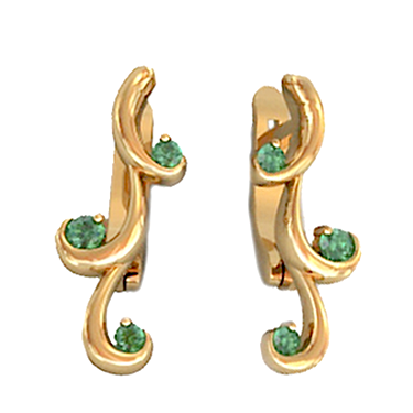 Серьги для яркой и впечатлительной особы, которая обожает небанальные украшения. Серьги имеют английскую застежку, удобную в ношении. Размер серёг 24х8 мм. Металл изготовления – золото (583 или 750 проба) в красном, белом, лимонном цвете или серебро (925 проба). Принимаем на переработку ваш металл: золото в пробах 500 (турецкое и польское), 750, 583, 885(стоматологическое), 900 (монеты), 999,9 (банковские слитки) и серебро в пробах 875, 900, 916, 925,999,9. Дополнительные услуги: Изменение цвета золота +30% к цене изготовления. Родирование белого золота. Чернение серебра. Цена указана за работу и не включает стоимость камней (цвет камней –Ваш выбор). Камни Ø 2,5 мм.