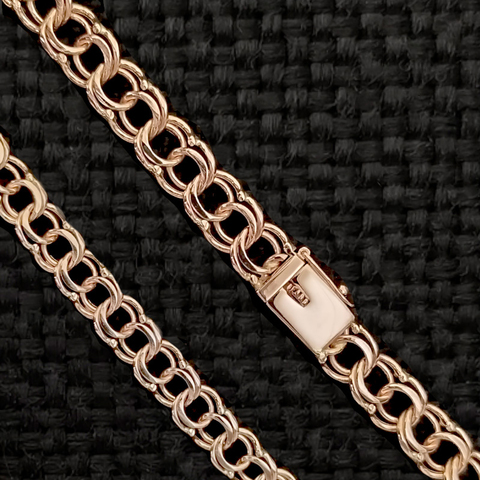 Плетение "Барсиз" считается одним из самых красивых и прочных. Это сложная, но эффектная вязь, которая обеспечивает крепкое сцепление звеньев. Коробка с накидушкой - крепкий, надежный замок. Загляните в раздел НАШИ РАБОТЫ и оцените наше мастерство. Выберите то, что принесёт Вам удовольствие! Металл изготовления – золото (583 или 750 проба) в красном, белом, лимонном цвете или серебро (925 проба). Принимаем на переработку ваш металл: золото в пробах 500 (турецкое и польское), 750, 583, 885(стоматологическое), 900(монеты), 999,9(банковские слитки) и серебро в пробах 875, 900, 916, 925,999,9. Дополнительные услуги: Изменение цвета золота +30% к цене изготовления. Чернение серебра. Расчет цены и веса - индивидуально.