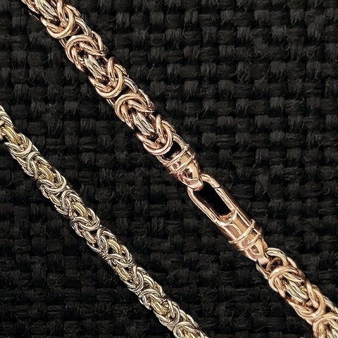 Плетение "Королевское" - этот тип цепочки обладает большим запасом прочности, за счет плотного сплетения звеньев между собой. Название говорит само за себя. Сильные стороны этого плетения — прочность, надежность и привлекательность. Эта цепь замечательно подчеркнёт статус своего владельца и отлично будет смотреться на любом наряде. Загляните в раздел НАШИ РАБОТЫ и оцените наше мастерство. Выберите то, что принесёт Вам удовольствие! Металл изготовления – золото (583 или 750 проба) в красном, белом, лимонном цвете или серебро (925 проба). Принимаем на переработку ваш металл: золото в пробах 500 (турецкое и польское), 750, 583, 885(стоматологическое), 900(монеты), 999,9(банковские слитки) и серебро в пробах 875, 900, 916, 925,999,9. Дополнительные услуги: Изменение цвета золота +30% к цене изготовления. Чернение серебра. Расчет цены и веса - индивидуально.